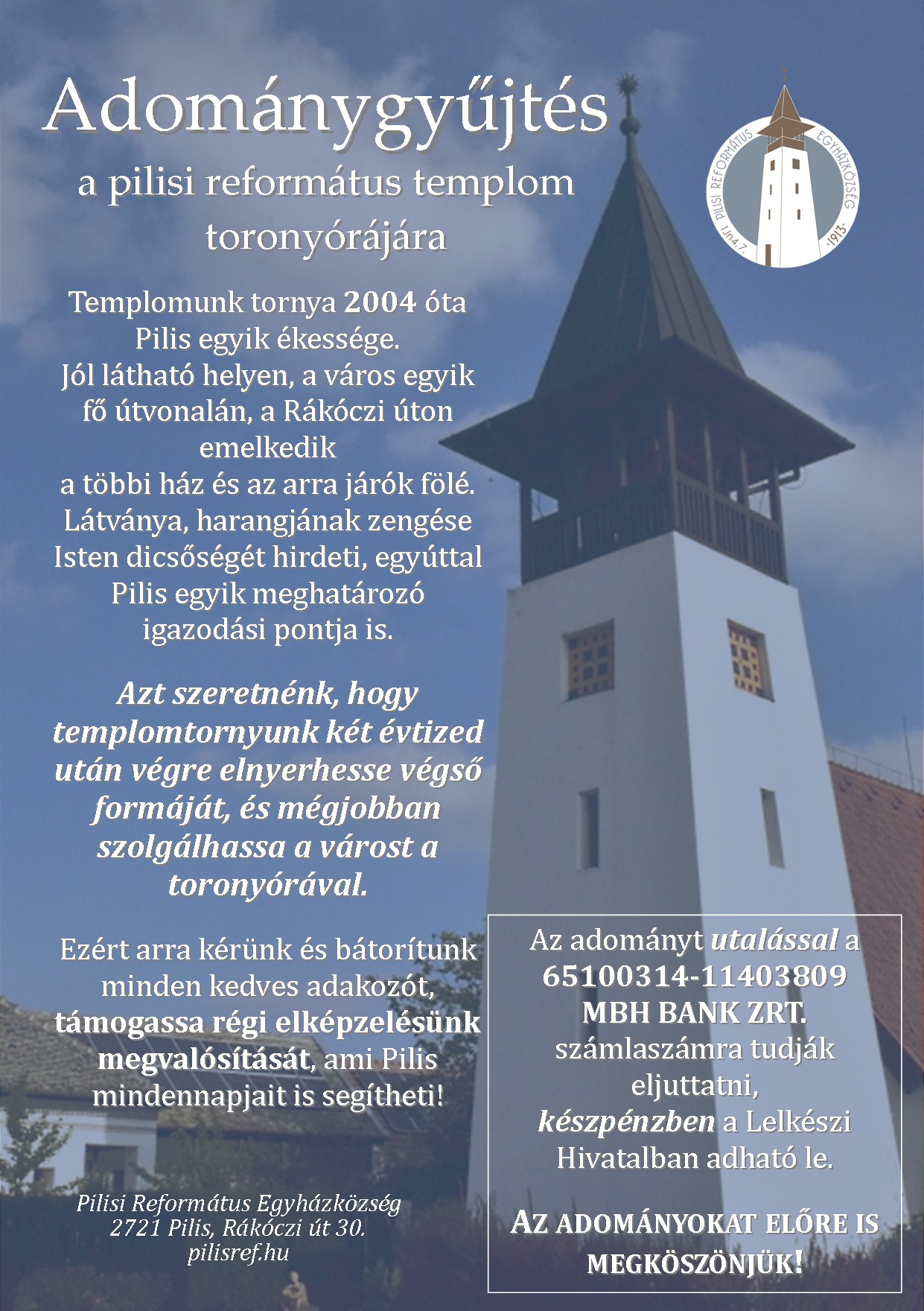 Szeretettel várunk minden vasárnap istentiszteletünkre, amely 10:30-kor kezdődik.